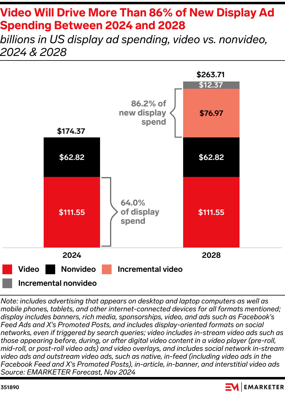 Key Stat: Video ad spending will account for 86.2% of new display dollars between 2024 and 2028.
