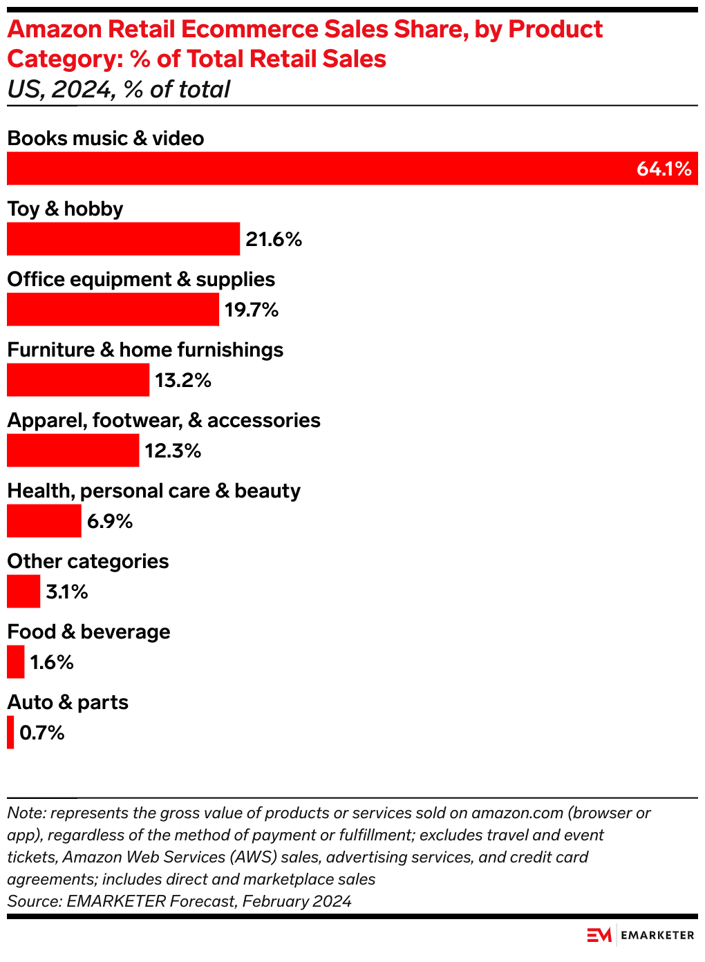 • That’s a major leap from three years earlier when it accounted for just 4.4% of all sales in the category, and there's a significant runway for Amazon to capture a greater share of the market.