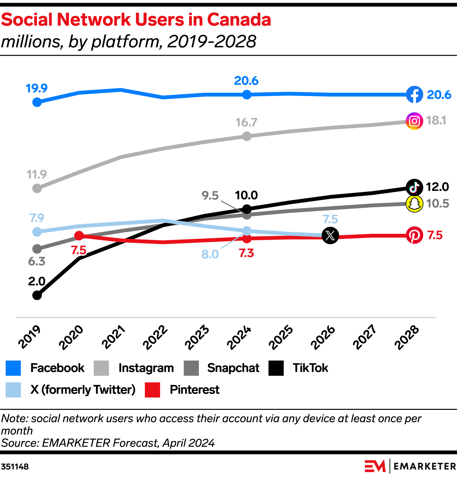 Social networks are a vital mass medium for advertisers. Reaching audiences on the top platforms is easier than ever with automated targeting, which claims a significant chunk of advertising budgets. Usage of the six social networks we forecast in Canada is climbing overall, but there are exceptions.