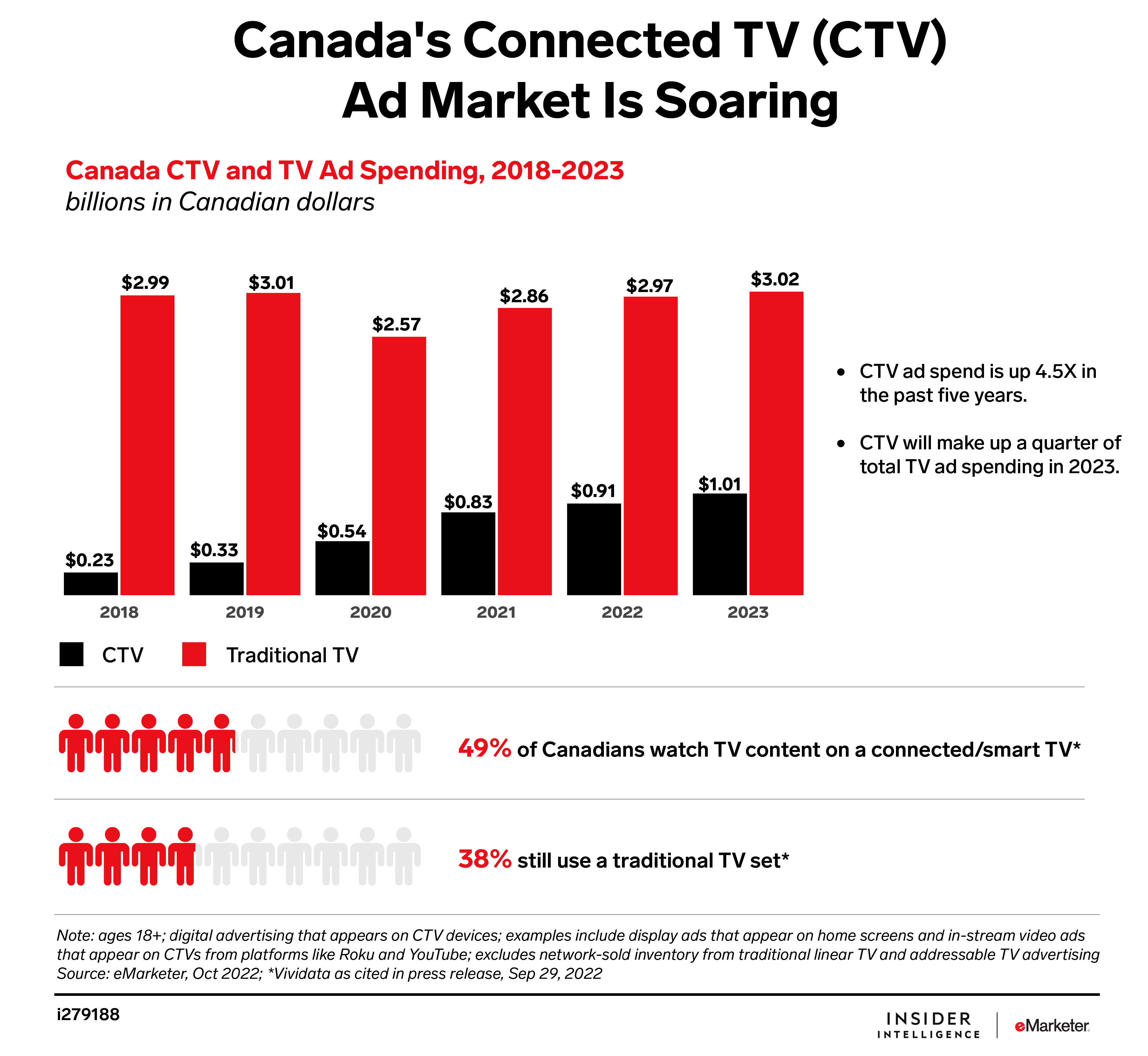 CTV advertising is hot, boosting a stagnated linear TV market. This is good news for media buyers previously shut out from a growing base of cord-cutters. Our forecasts show: