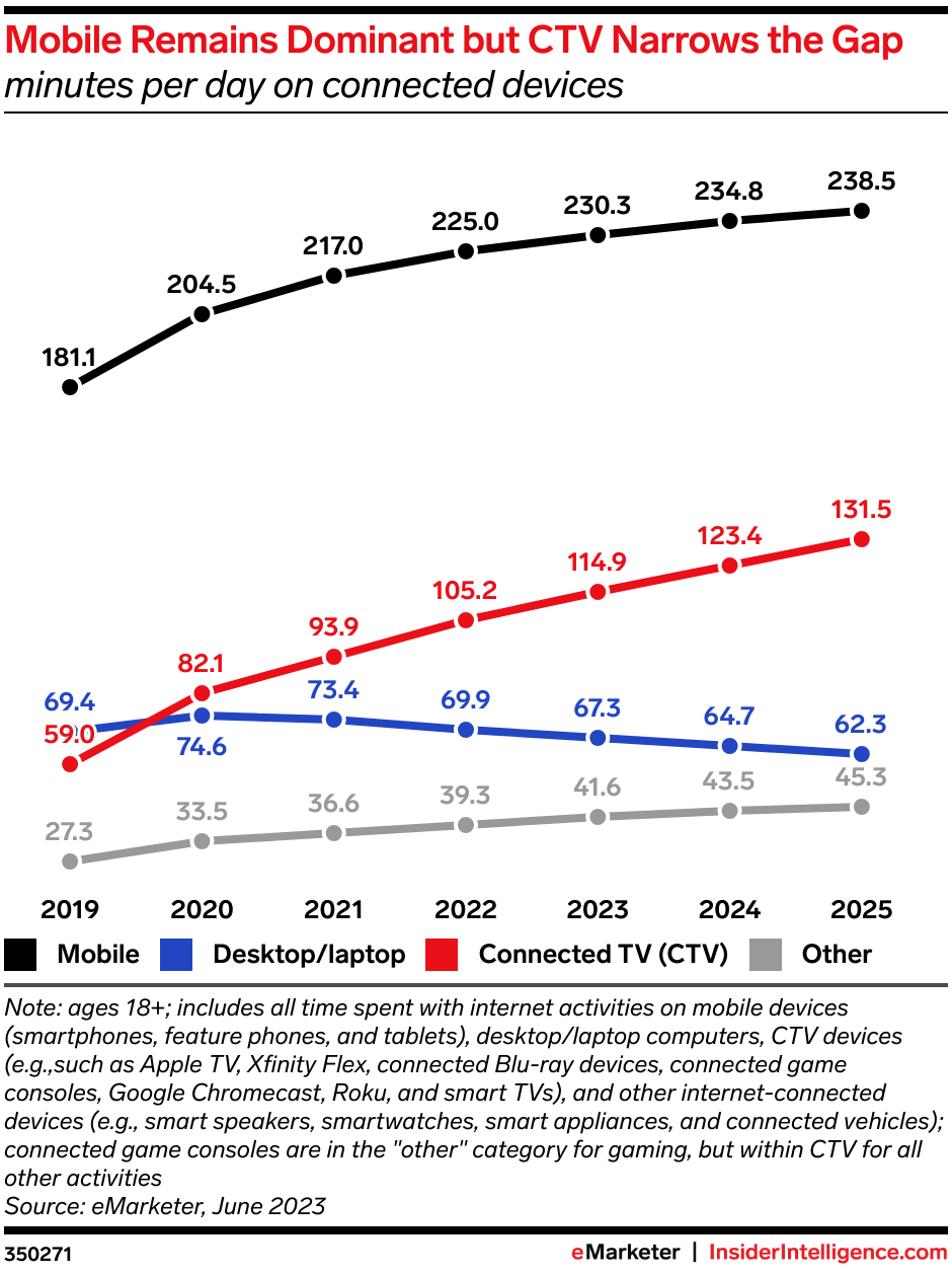KEY STAT: Mobile and CTV will capture more than three-quarters of US digital time spent in 2023.