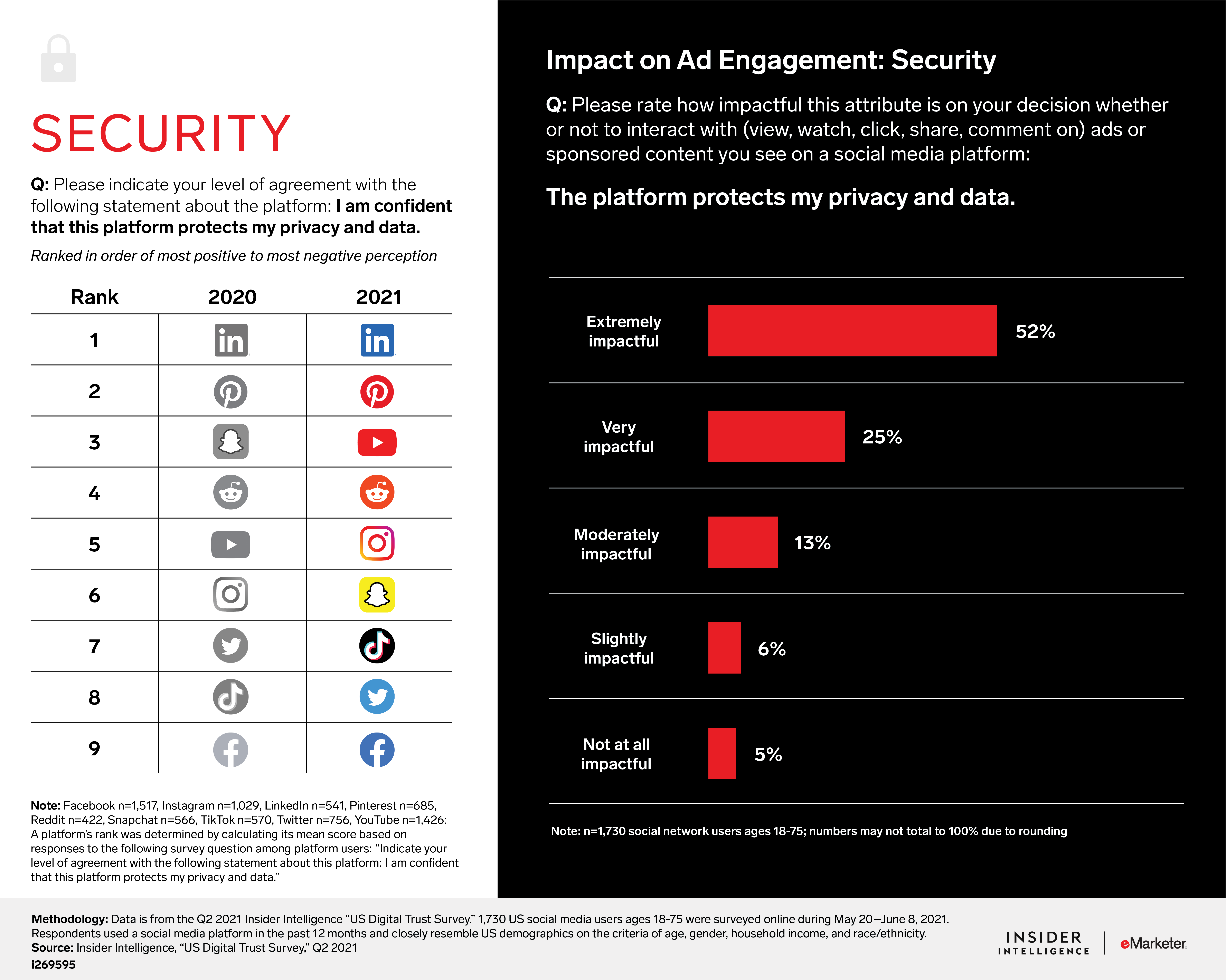 KEY STAT: More than half (52%) of US adult social media users said that whether a platform protects their privacy and data is extremely impactful on their decision to interact with the ads or sponsored content they see there.