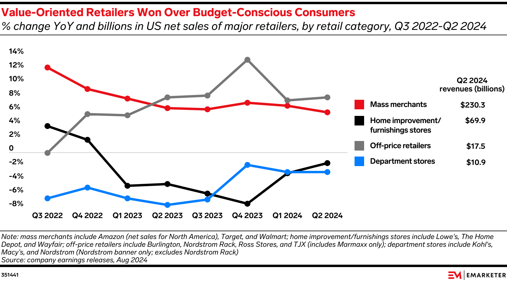 The results depict a complicated retail environment. Even as consumers focused more on value, they continued to pull out their pocketbooks. That helped all three of the mass merchants in this report surpass our Q2 expectations. At the same time, other retailers, such as Home Depot and Lowe’s, fell short of our projections as elevated interest rates deterred big-ticket purchases, softening demand in the home improvement category. Overall, the results reflect a landscape roughly in line with our full-year expectations of 2.8% growth year over year for total US retail sales.