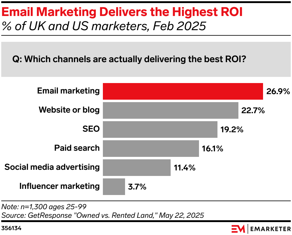 Key Stat: Email marketing delivers the highest ROI, according to US and UK marketers.
