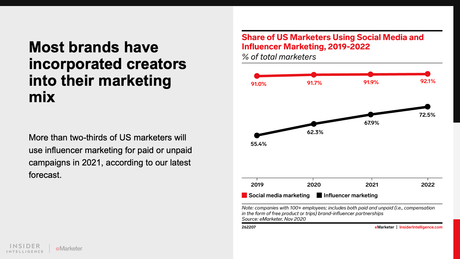 KEY STAT: According to our latest forecast, 67.9% of US marketers will use influencer marketing for paid or unpaid campaigns this year.