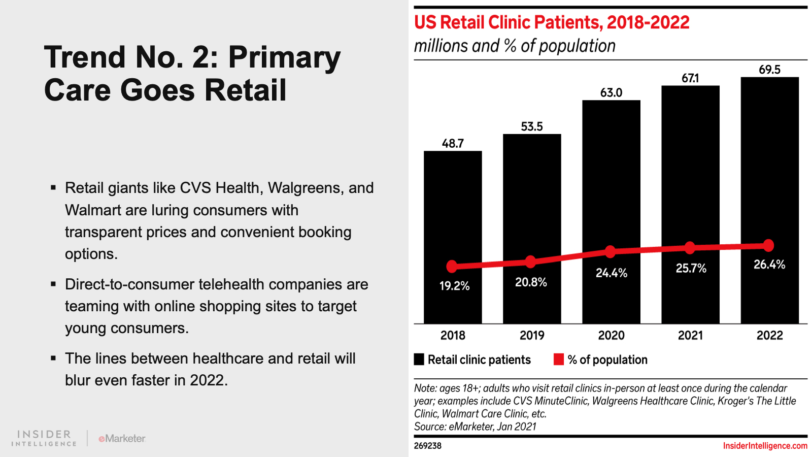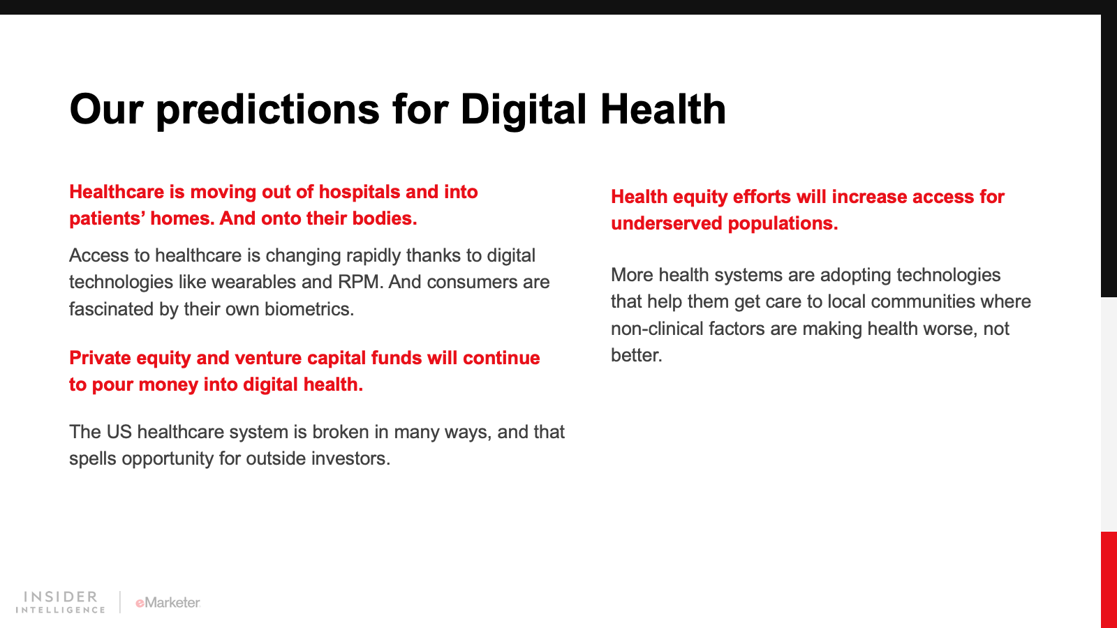 The US healthcare system has many problems, but one of the most critical is access. Investors and corporations are pouring billions of dollars into digital health companies with the goal of using technology to reach consumers where they are and deliver the care they need. Solutions range from telehealth and the digital front door to retail health and remote patient monitoring (RPM). There’s no sign the funding flood will dry up in 2022. Will it cause more disruption, more noise, or some real innovation?