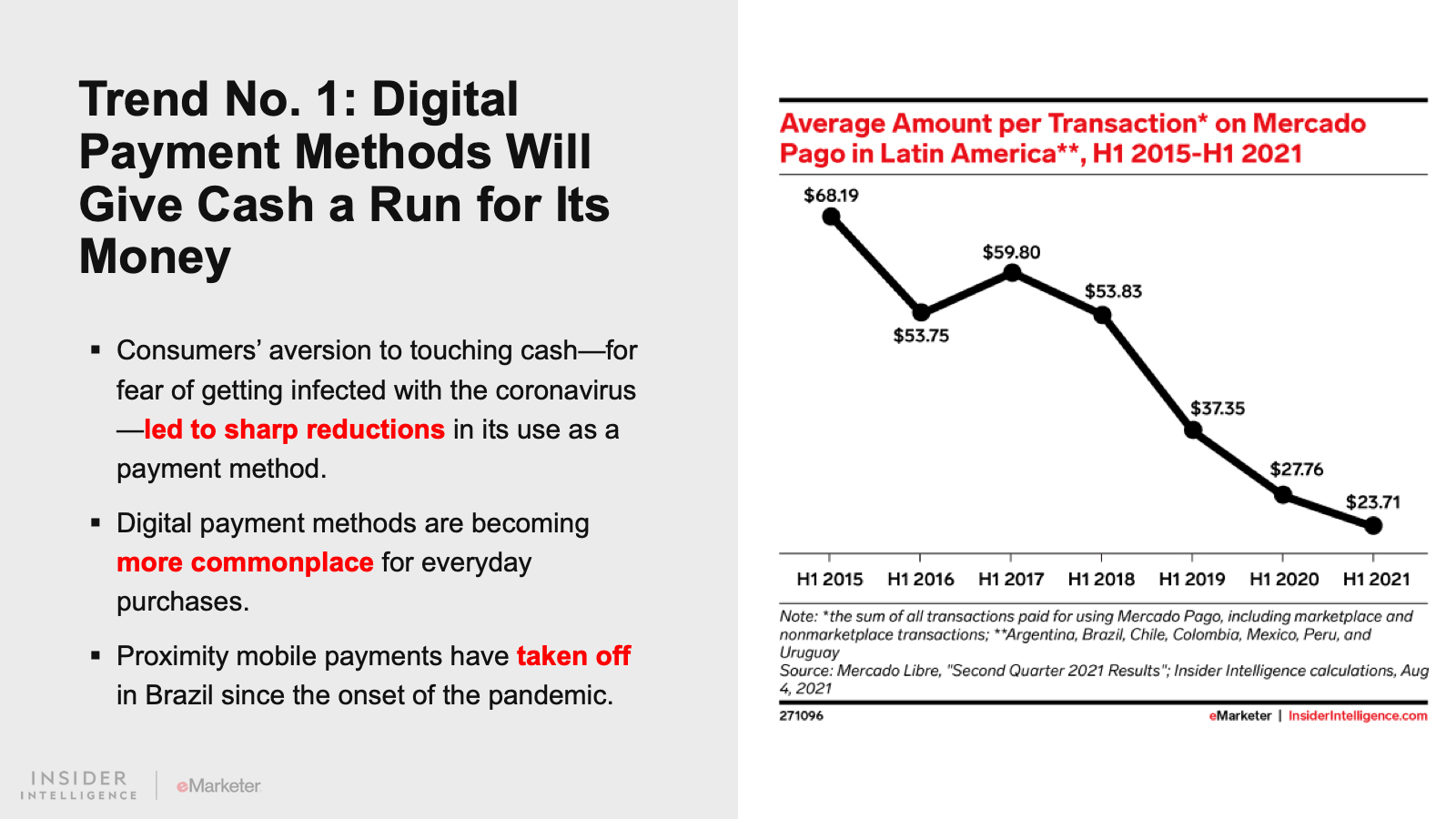 Latin America is no stranger to change, but consumers’ quick embrace of new digital habits grew at an unprecedented rate and scale like never before during the pandemic. In 2022, expect a surge in digital payment adoption, a change in consumer expectations around ecommerce, a struggle with sustainability issues, an embrace of social media by small businesses, and the rise of retail media networks in Latin America.