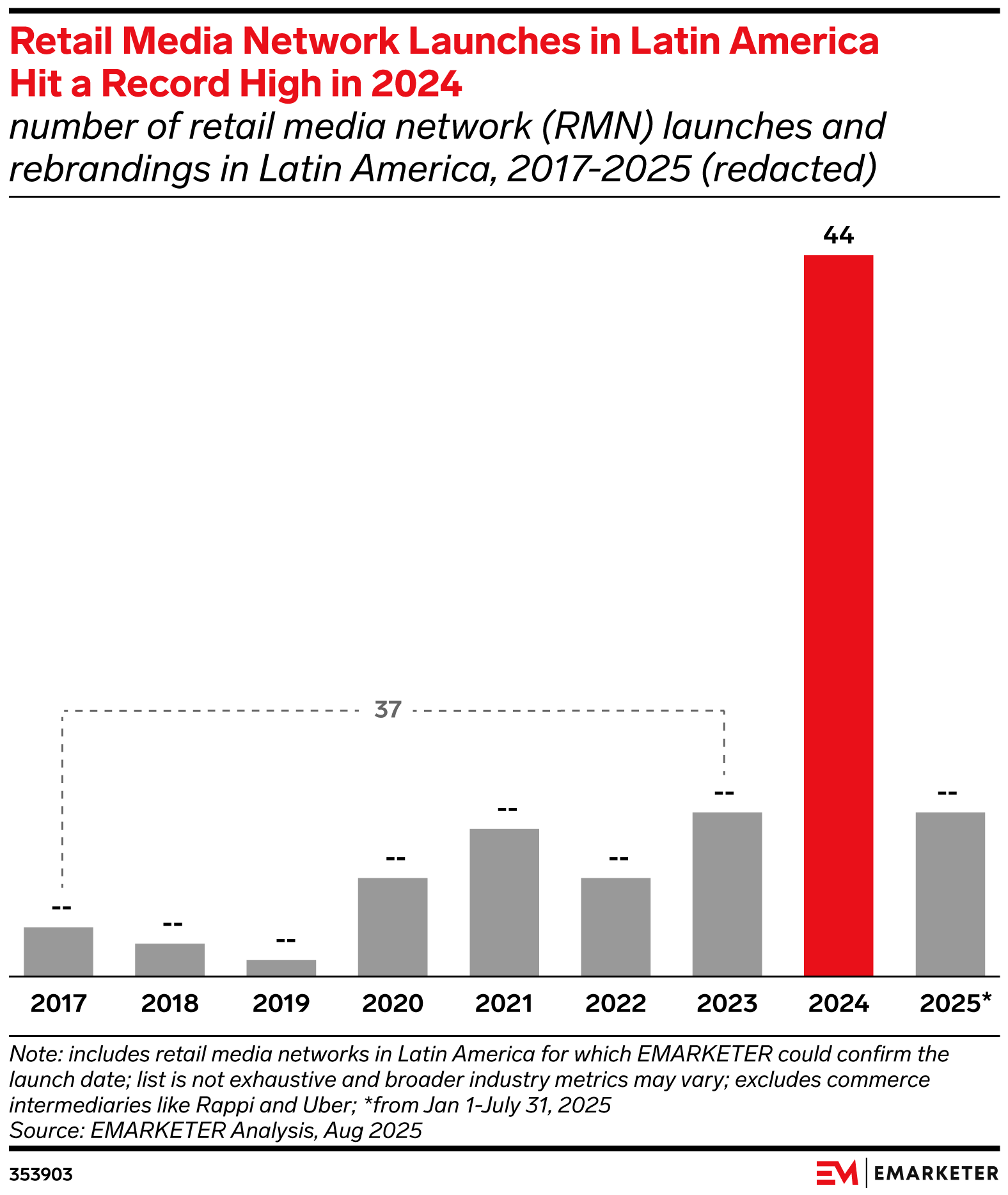 Key Stat: Nearly half of Latin America’s retail media networks launched in 2024—more than in the entire period from 2017 to 2023 combined—marking an inflection point in the ecosystem’s growth trajectory, per our analysis.
