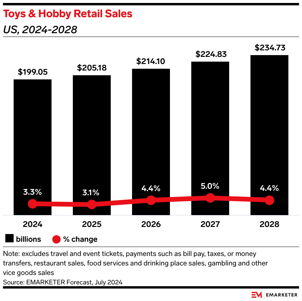 - Consumer sales grew 14%, which was a dramatic contrast with the broader toy industry. For example, in the US, toy industry sales fell 0.4% in the first half, per Circana.