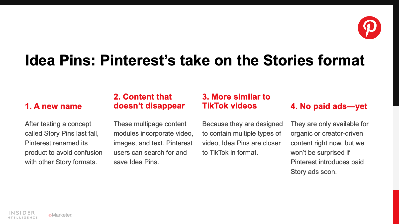 These platforms were part of the third wave of adopters (Snapchat was the first, followed by Instagram and its siblings). However, lack of user engagement led Twitter to announce that it’s shutting down Fleets in August. LinkedIn is still pushing ahead with the format, but Pinterest may have the more interesting take, with Stories (called Idea Pins) that don’t disappear.