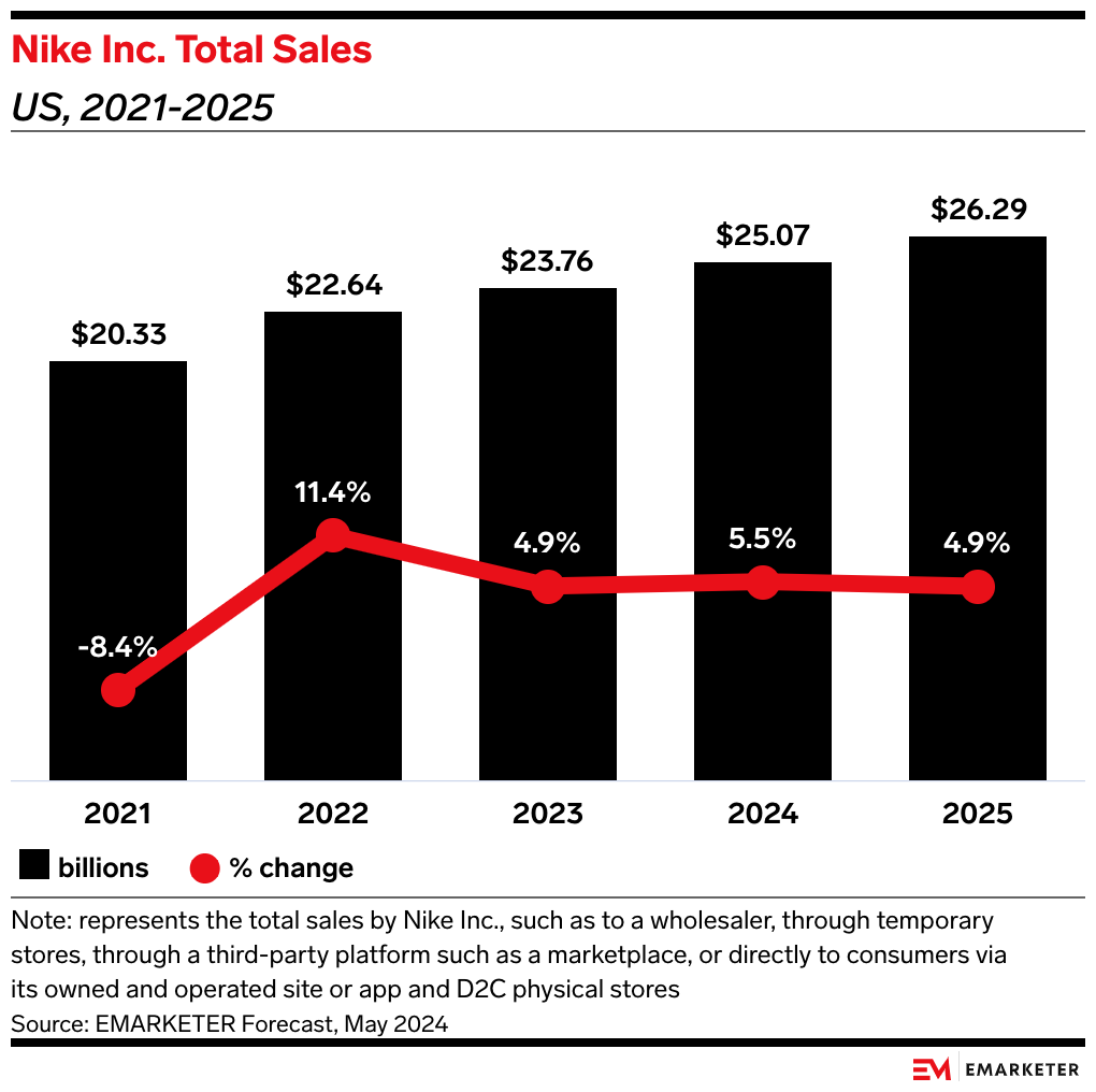 A tough spot: Nike’s revenue slide illustrates the scale of the company’s problems as it struggles to win back market share it lost to competitors like adidas, Hoka, and On Running during its shift to direct-to-consumer (D2C) sales.