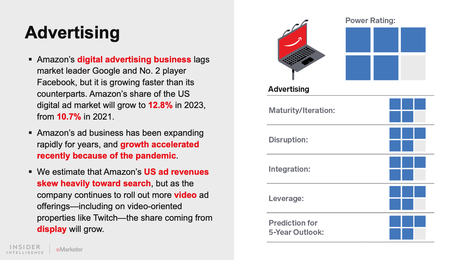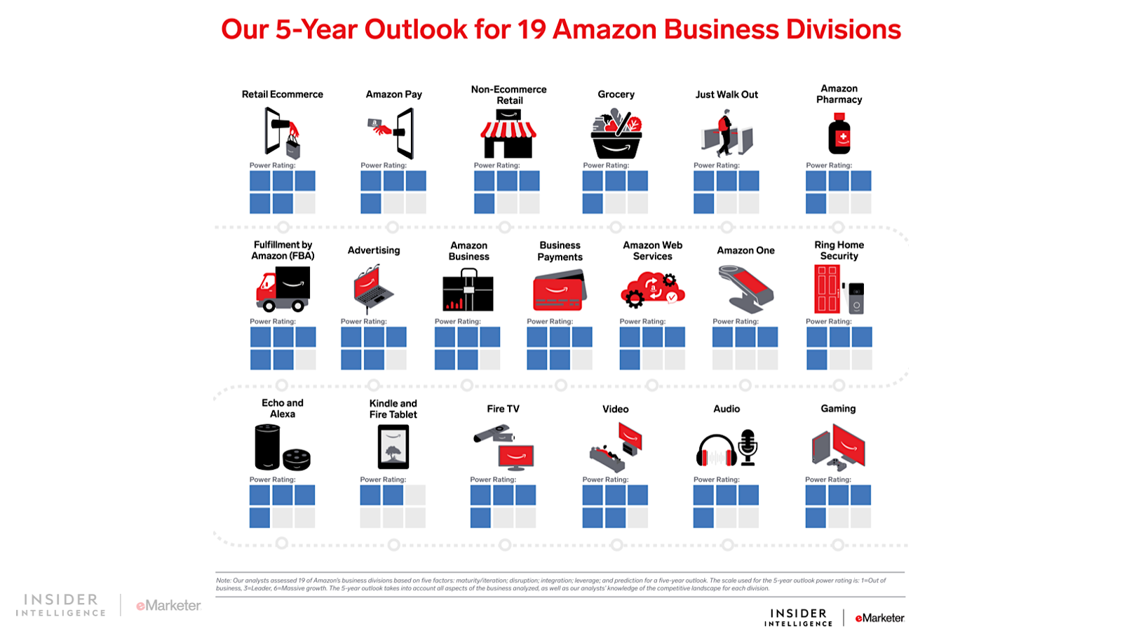 WHAT’S IN THIS REPORT? Our analysts evaluated 19 of Amazon’s business divisions, assessed how each drives the business, and forecast where each will be in five years.