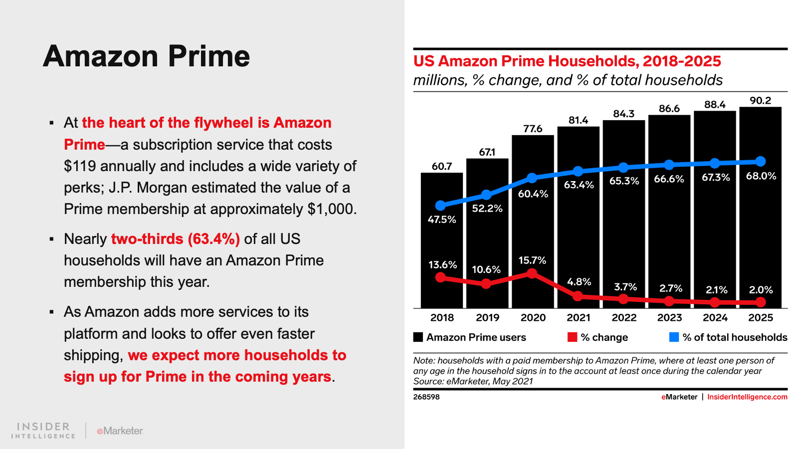 We forecast that well over half (63.4%) of all US households will use Amazon Prime this year. To put that in perspective, we estimate that in 2016, just 35.6% of US households subscribed to the service.