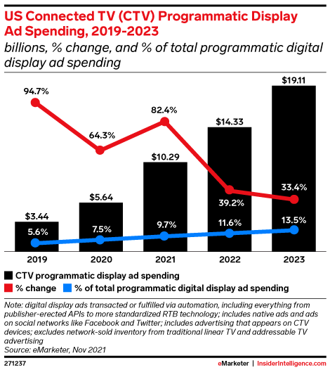 In October, we raised our 2022 US CTV ad spending forecast from $17.44 billion to $19.10 billion.