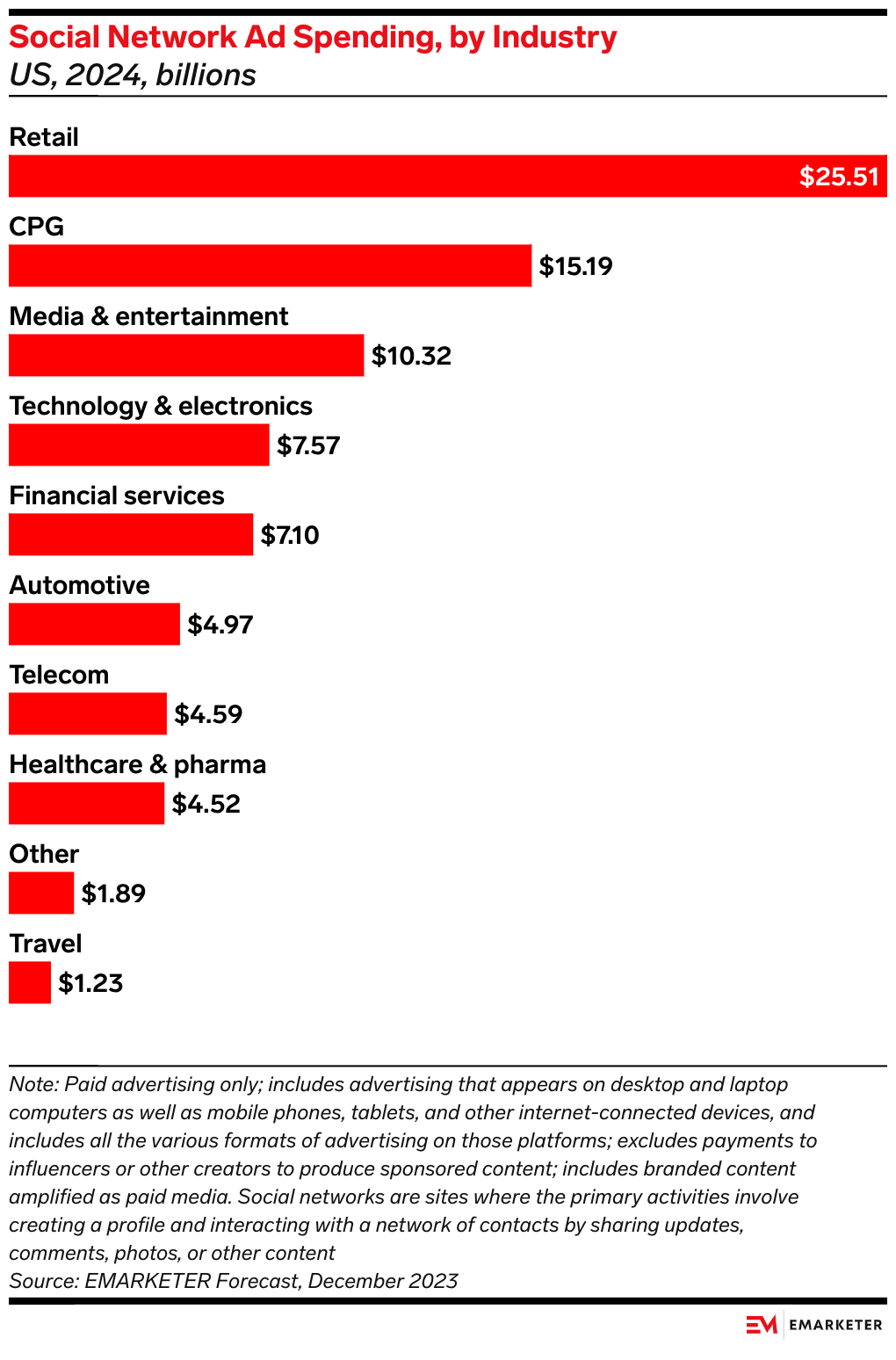 Retail and CPG will account for nearly half of all US social ad spending in 2024