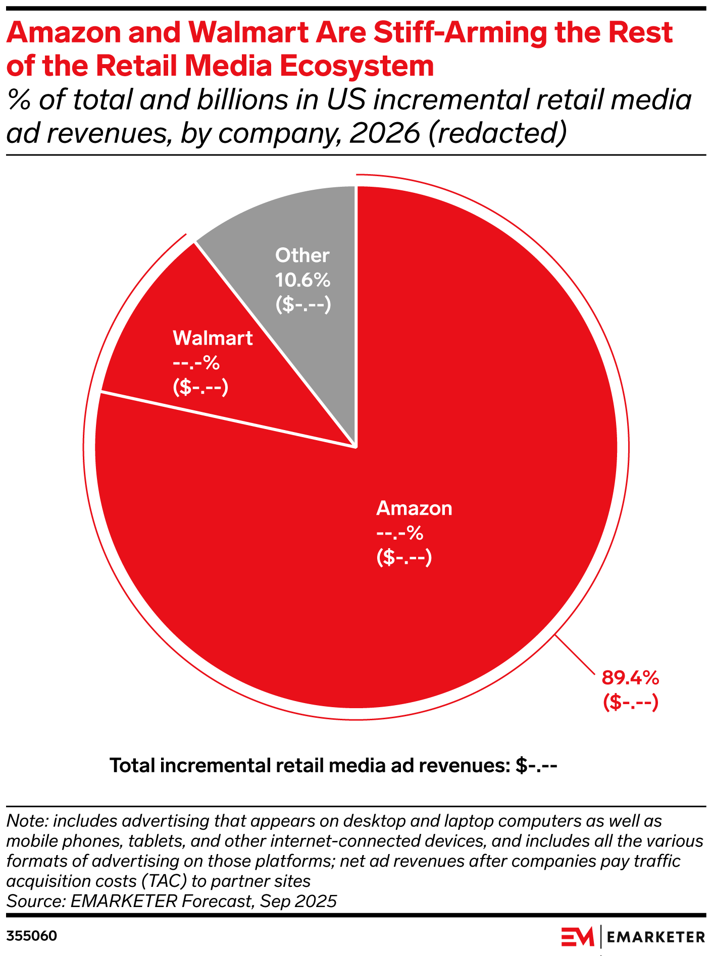 Key Stat: Walmart and Amazon will vacuum up over 89% of the incremental dollars spent in retail media in 2026.