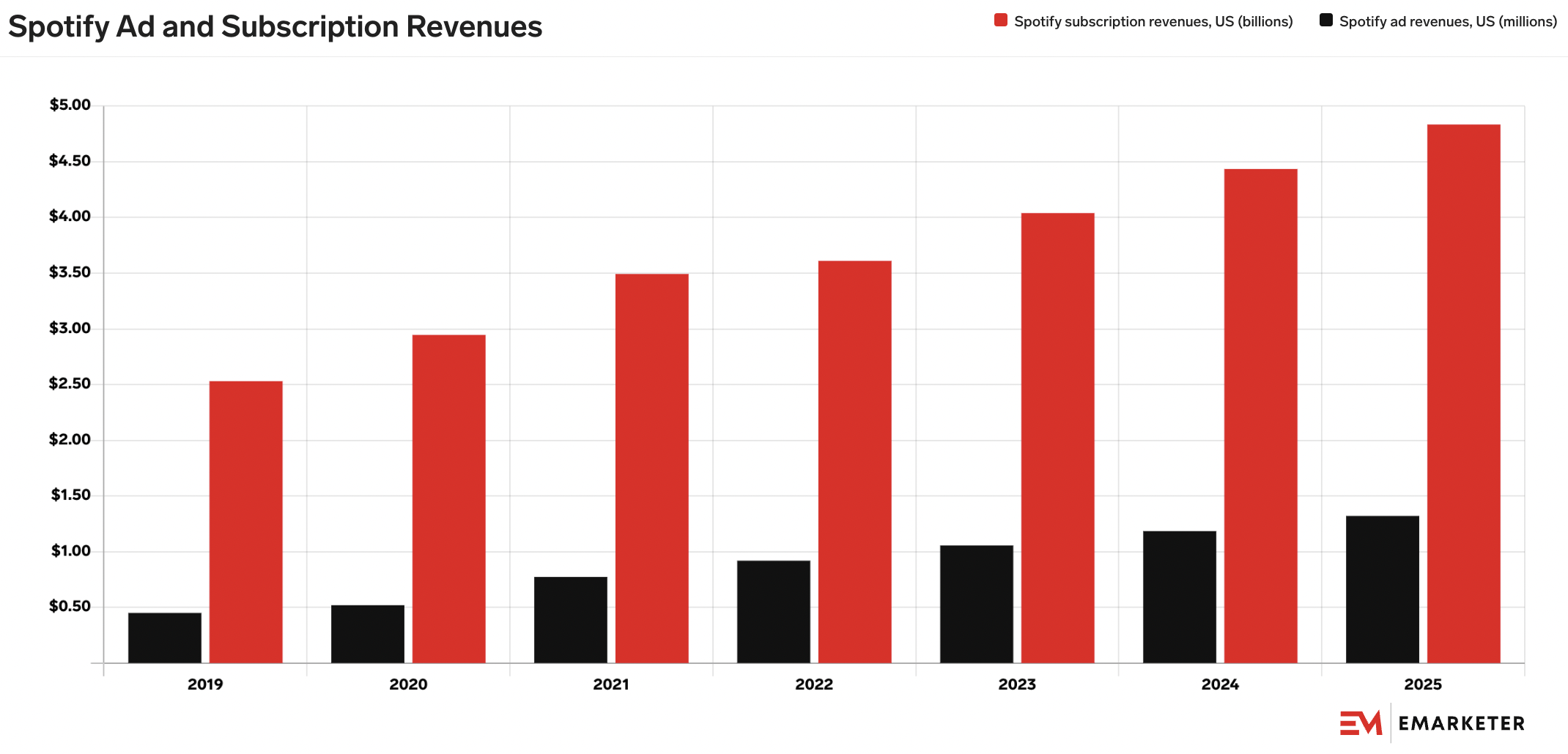 Yes, but: Spotify faces challenges in fully capitalizing on its ad space. Since nearly 40% of its users subscribe to ad-free premium accounts, that limits Spotify's ad reach.