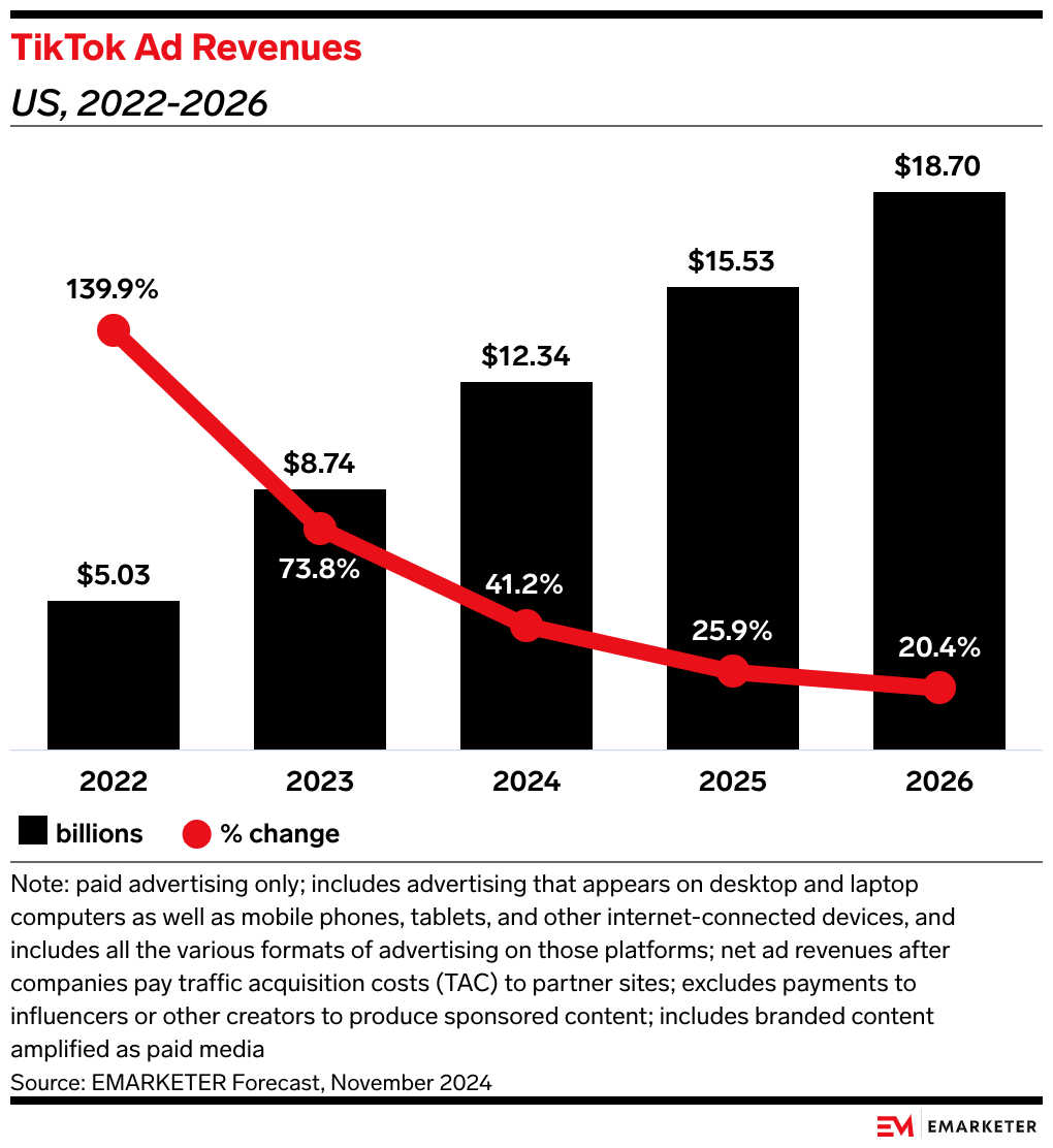 - That adverse impact on US businesses could be a critical argument for TikTok. Even with the looming ban, TikTok has remained a crucial platform for advertising; we forecast that TikTok will generate $12.34 billion in US ad revenues this year, up 41.2% YoY.