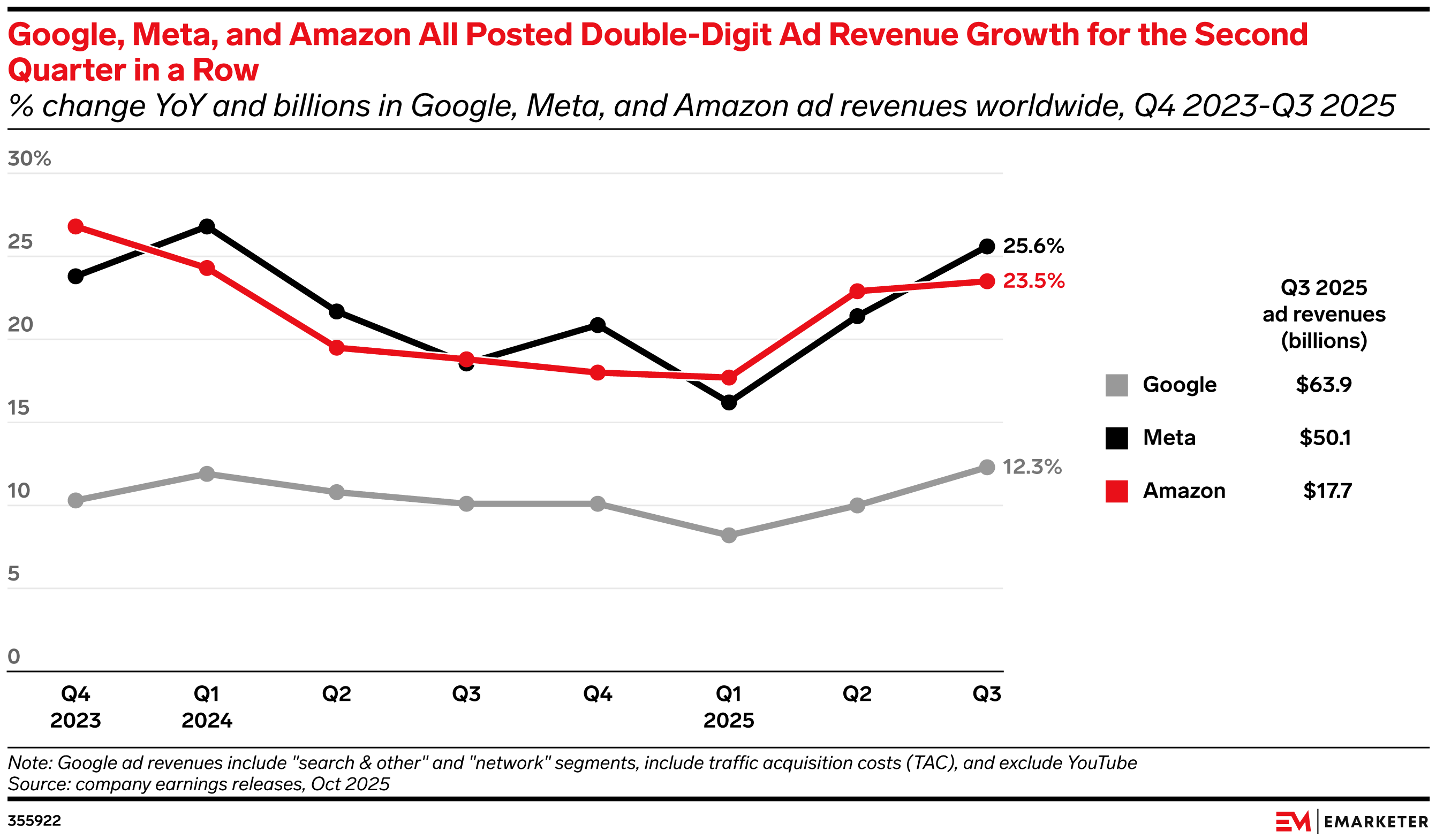 Key question: As AI spending and regulatory scrutiny reshape digital advertising, can the triopoly’s Q3 strength hold up against the structural risks ahead?
