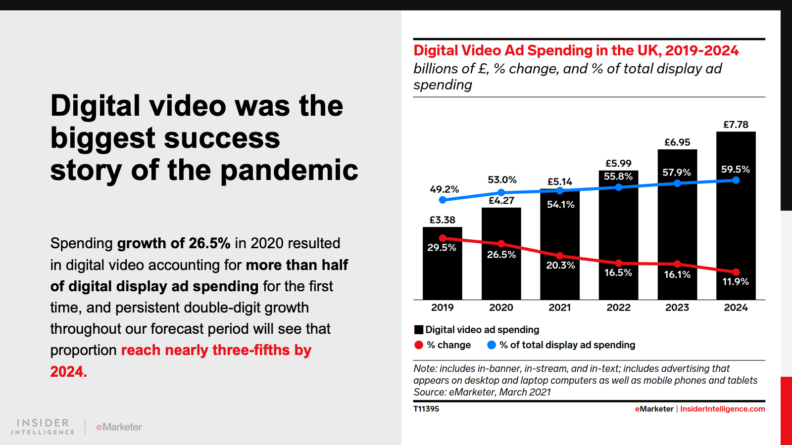 Traditional advertising suffered during the pandemic. Budgets that were destined for these channels were shifted over to digital options, instead. Fueled particularly by massive video gains, digital ad spending will account for more than three-quarters of total media spend in the UK this year.