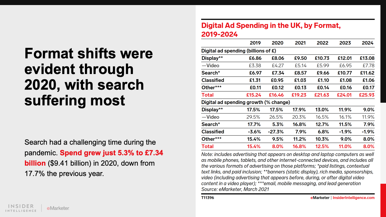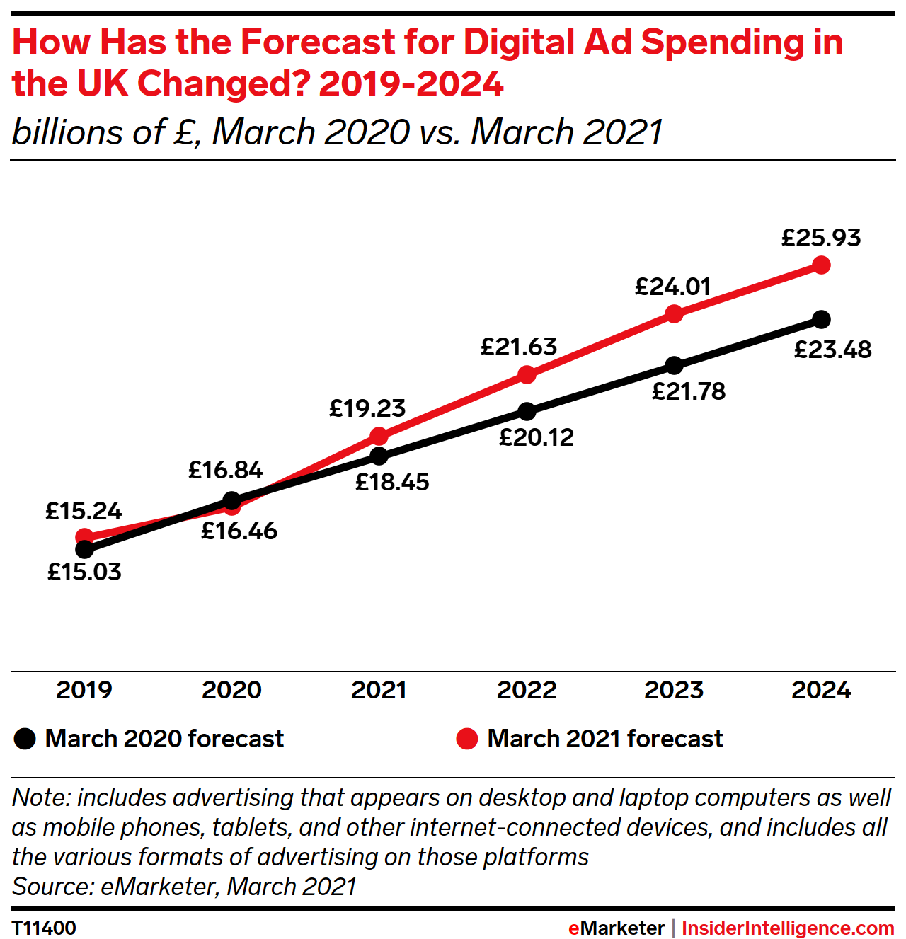 KEY STAT: Digital advertising’s better-than-solid showing during the height of the pandemic in 2020 means that this year’s total of £19.23 billion ($24.66 billion) in spend will be above our pre-pandemic forecast.