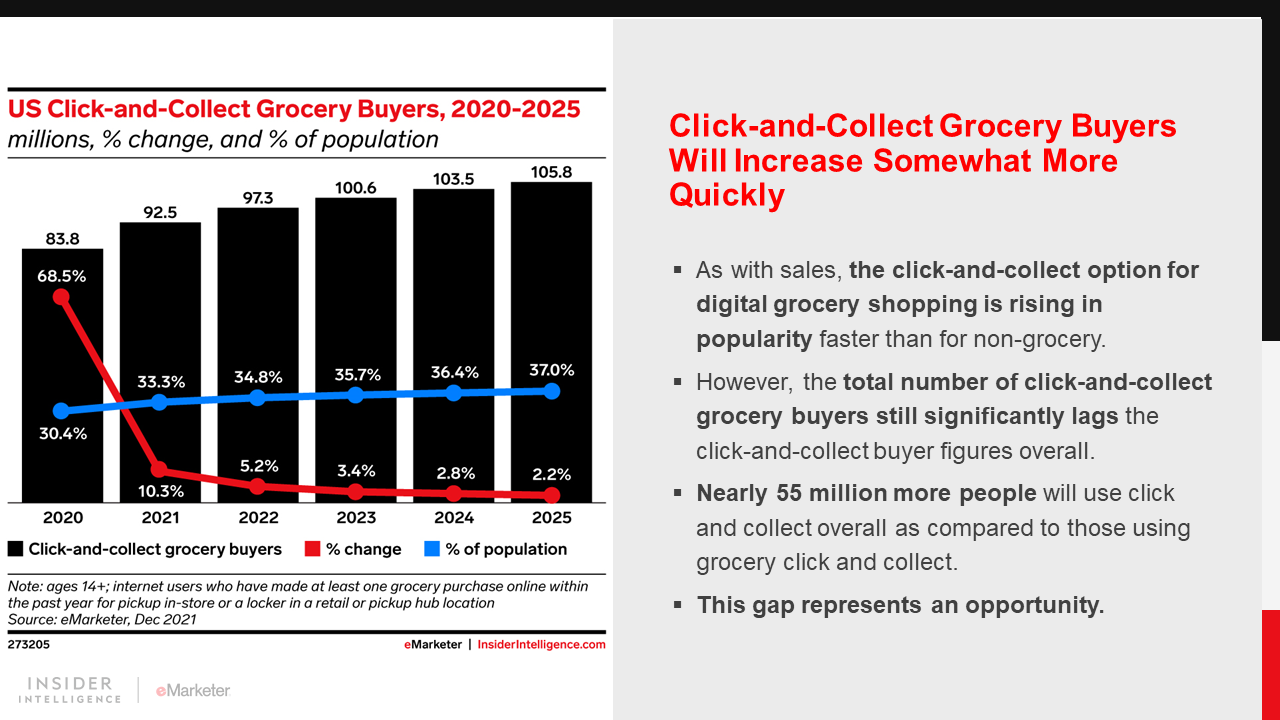 KEY STAT: US buyers will spend $95.87 billion via click and collect this year, a 19.4% increase year over year (YoY). However, the fulfillment option’s surprisingly sluggish 2021 means spending is well below what we anticipated.