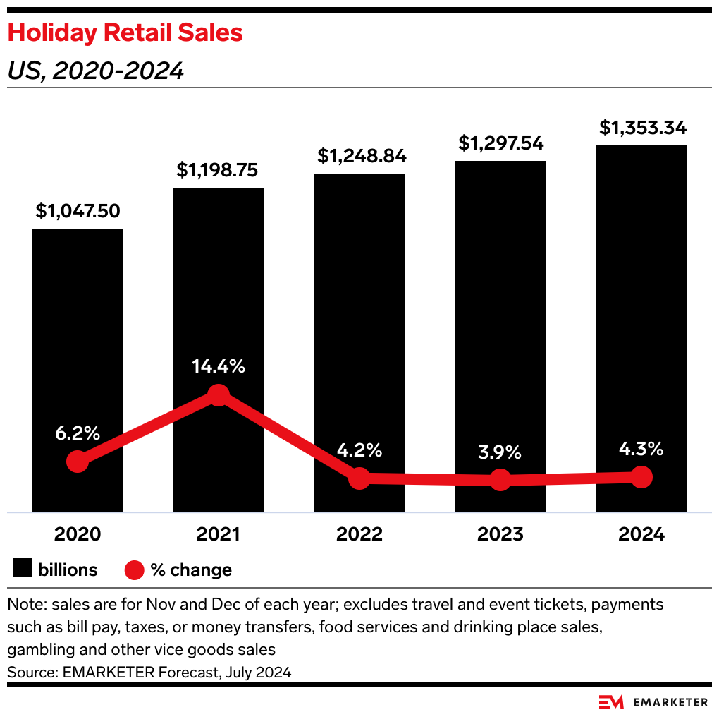 Our take: 2024’s robust holiday performance capped off a year during which retail spending was remarkably resilient, despite consumers’ doom and gloom about the economy.
