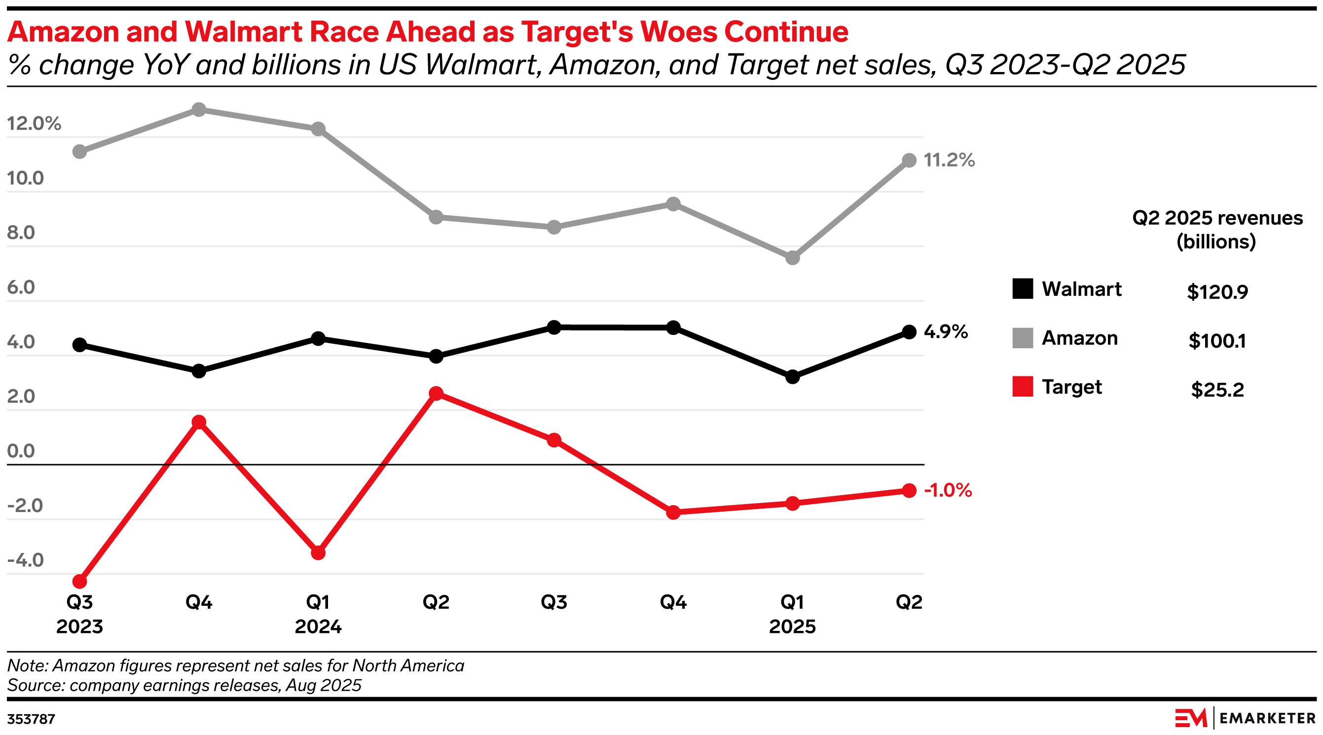 Amazon and Walmart pulled ahead in Q2 while Target remained bogged down