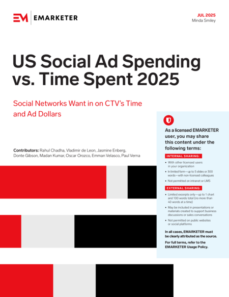 Social network ad spending is still high relative to time spent on them, a disconnect primarily driven by Meta. As time spent with social networks plateaus, platforms are trying to break into CTV to capture the time spent (and ad dollars) in streaming.
