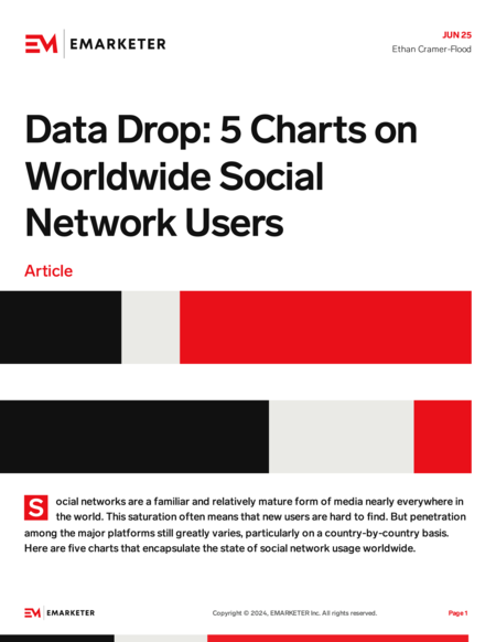 Here are five charts that size social network usage on a worldwide level by platform and by country and region.